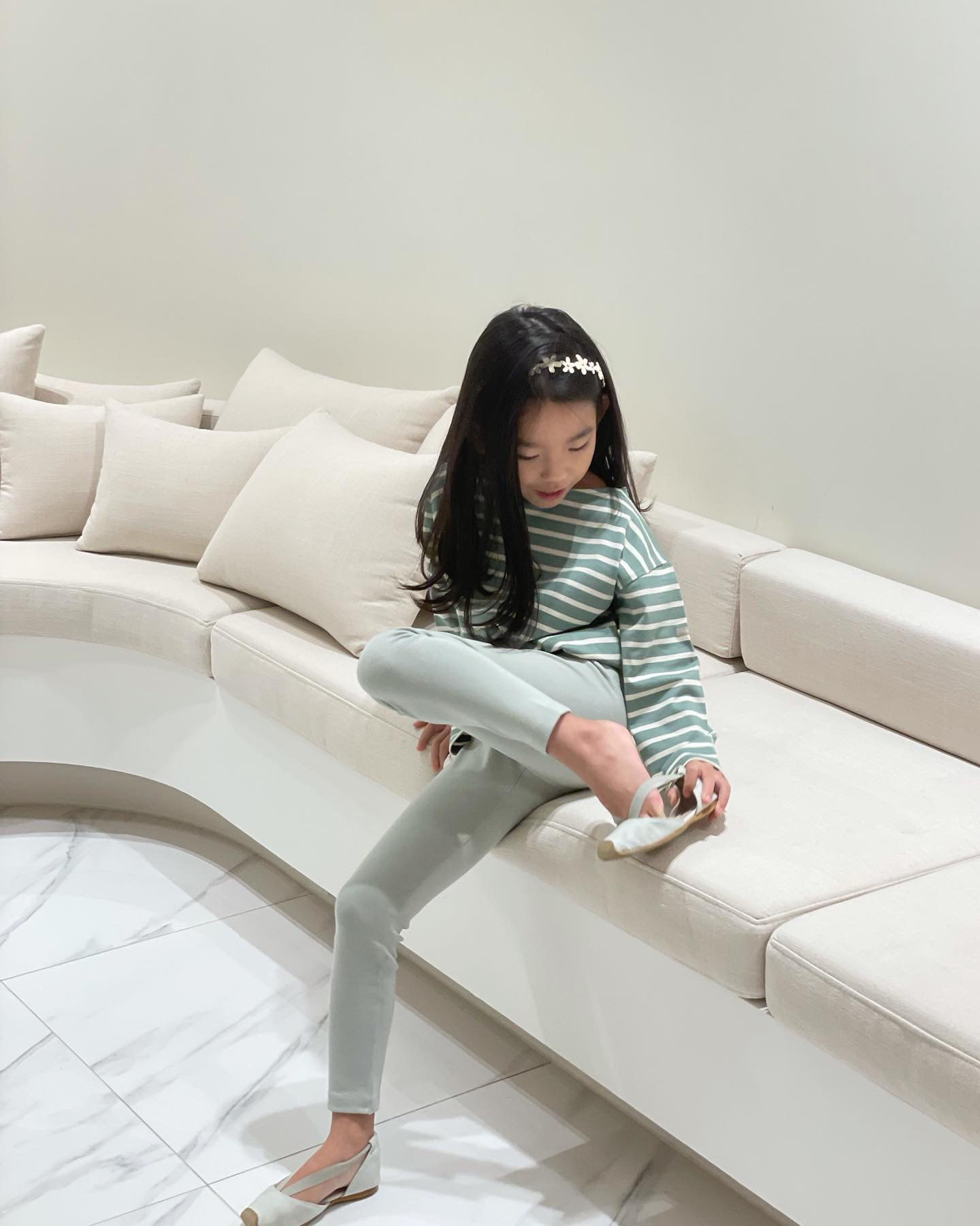 티셔츠(그린크림) / 레깅스(민트)