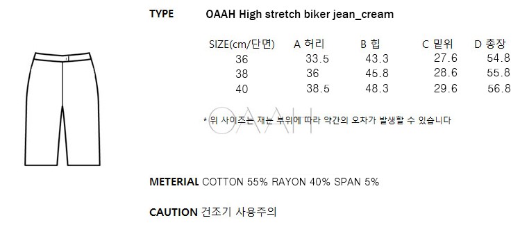 OAAH High stretch biker jean_cream 은