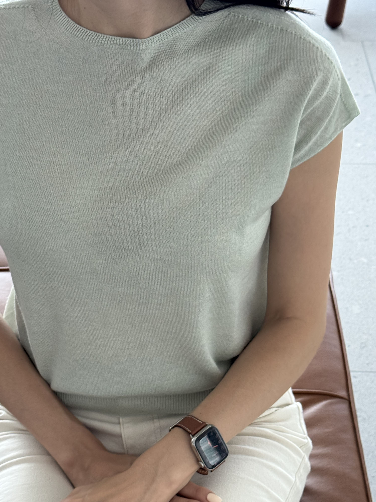 시즌 상관없이 유행스럽지 않은 미니멀한 디자인의 풀오버로 슬리브리스가 부담스러운 분들,